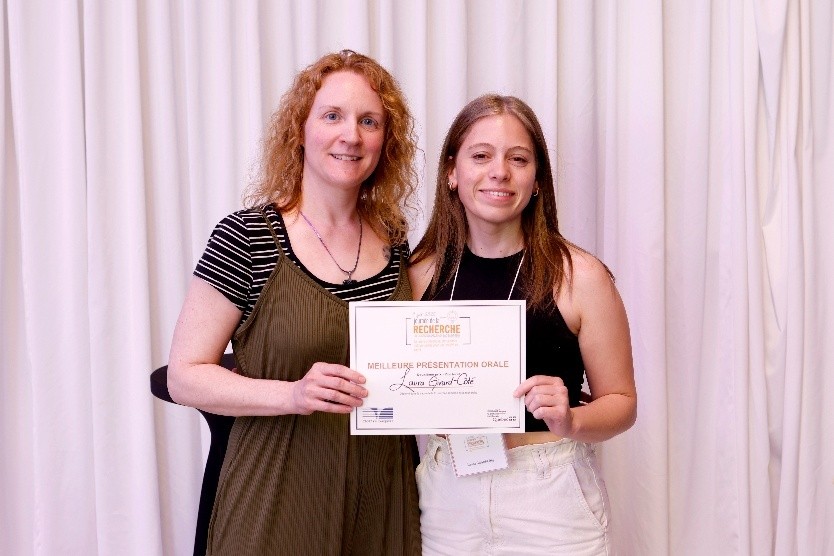 De gauche à droite : Sophie Girard, directrice générale de la Corporation de recherche et d’action sur les maladies héréditaires (CORAMH), et Gilles-Philippe Morin, candidat à la maîtrise de recherche en santé durable à l’Université du Québec à Chicoutimi.